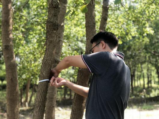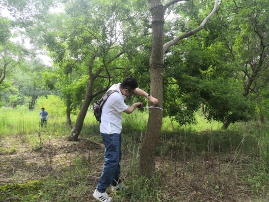 近期“秋老虎”發(fā)威,炎炎烈日、驕陽(yáng)似火,林中蚊蟲(chóng)叮咬,地面起伏、時(shí)有溝壑。但沒(méi)有一個(gè)人叫苦喊累,認(rèn)真的用樹(shù)尺測(cè)量每一棵苗木,并詳細(xì)記錄。至太陽(yáng)西下,大家用腳丈量了500多畝田地,測(cè)量了10000余株苗木?!巴陜善诘拿缒颈P(pán)點(diǎn),我要盤(pán)四五天才能盤(pán)點(diǎn)完,現(xiàn)在有大家的幫忙,不到一天就完成了,工作效率大大提高了。”苗圃負(fù)責(zé)人高興地說(shuō)。