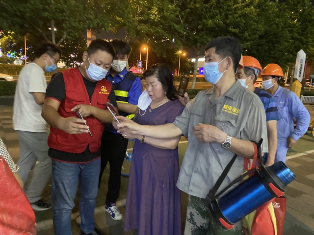 會(huì)后,集團(tuán)迅速組織黨員干部組成志愿者隊(duì)伍,聯(lián)系建鄴區(qū)認(rèn)領(lǐng)疫情防控志愿工作,趕赴多個(gè)社區(qū)協(xié)助防疫一線的核酸檢測(cè)工作。集團(tuán)志愿者隊(duì)伍每組都由集團(tuán)部室、公司負(fù)責(zé)人帶隊(duì),進(jìn)入工作現(xiàn)場(chǎng)后,他們迅速熟悉掌握工作要求,立即上崗?fù)度胫驹阜?wù)。引導(dǎo)前來(lái)進(jìn)行檢測(cè)的市民嚴(yán)守疫情防控要求有序排隊(duì)進(jìn)場(chǎng),安撫待檢人員相互配合支持,指導(dǎo)幫助登記掃碼加快工作速度,為老人和困難市民提供方便服務(wù)……在他們與其他志愿者的共同努力下,這幾個(gè)檢測(cè)點(diǎn)都秩序井然,有效推進(jìn)了檢測(cè)速度,減少了市民等待時(shí)間。志愿者們把保障核酸檢測(cè)有序高效推進(jìn)作為此時(shí)踐行初心使命的擔(dān)當(dāng),忘記了炎熱夏夜忙碌的一身汗水,忘記了蚊蟲繞身不停的叮咬,為筑起群眾生命健康防線獻(xiàn)出了一份力量。