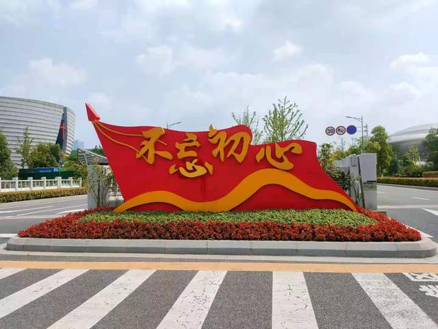 不忘初心來時路,同心共筑中國夢。位于建鄴區(qū)夢都大街揚子江大道路口高7米,占地面積100余平方米的主題景觀,在綠地基礎(chǔ)上突顯了“慶祝中國共產(chǎn)黨成立100周年”活動標(biāo)識等黨建元素;中國傳統(tǒng)紋樣圖案、彩色立體門框的設(shè)計,賦予整件作品立足傳統(tǒng)、開放包容的內(nèi)涵;蛇鞭菊、斑葉芒、彩葉草、夏堇等各式花卉錯落有致的鋪滿地面,烘托了喜迎建黨百年的喜慶氛圍。