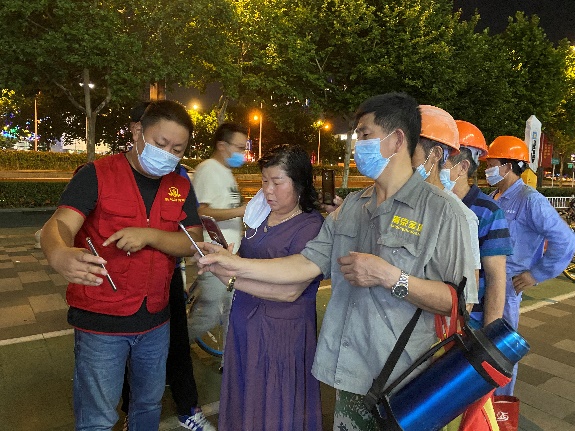 進(jìn)入工作現(xiàn)場后,志愿者們迅速熟悉掌握工作要求,主動溝通協(xié)調(diào)、協(xié)助引導(dǎo)秩序、指導(dǎo)幫助登記掃碼、耐心解答疑問……大家分工明確、緊張有序地全力配合醫(yī)護人員開展核酸檢測工作,炎熱夏夜,蚊蟲叮咬,絲毫不影響大家的工作熱情,在大家的共同努力下,有效推進(jìn)了檢測速度,減少了市民等待時間,用實際行動為社區(qū)群眾筑起一道生命健康防線,也讓黨旗在疫情防控一線高高飄揚。(擬稿人:王慧、于桐、武照嬌)