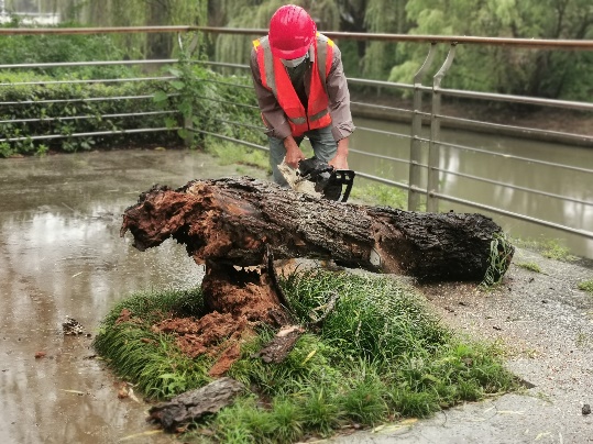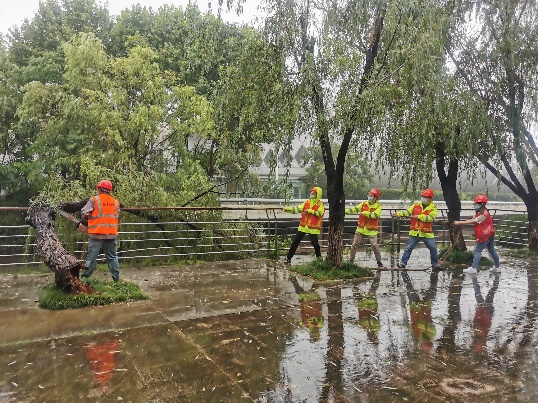 陣風(fēng)10級以上、平均風(fēng)力8級,接連數(shù)天雨水不斷,7月27日,“煙花”中心過境我市,為進(jìn)一步將“我為群眾辦實(shí)事”實(shí)踐活動(dòng)落到實(shí)處,進(jìn)一步體現(xiàn)黨員的先鋒帶頭作用,公司迅速組建黨員先鋒隊(duì),協(xié)助綠化養(yǎng)護(hù)人員巡查檢查、清理斷枝、搶險(xiǎn)倒伏樹木。