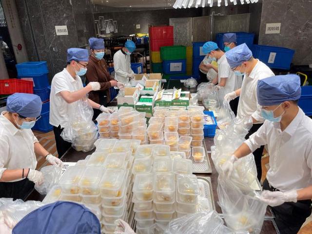 可口三餐傳遞來自酒店人的心意。小巧可愛的手工麻團、人見人愛的紅燒肉、夏日嘗鮮的小龍蝦……誘人美食由配送小隊準(zhǔn)時送達,讓住店市民過上了“吃好喝好”的快樂生活。