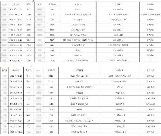 “3323房間需要辣椒醬或老干媽”、“2420房間需要免洗洗手液”、“3903房間住客喉嚨不舒服需要藥”……客服中心每天都會接到各種特殊的需求并一一做好記錄,及時聯(lián)系相關(guān)同事協(xié)助采買、送達。