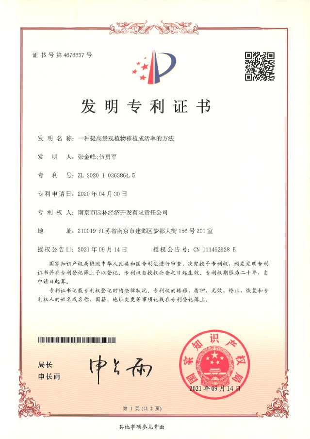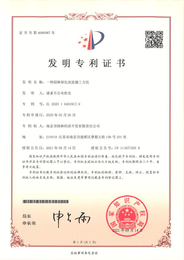 近日,河西集團(tuán)南京市園林經(jīng)濟(jì)開(kāi)發(fā)有限責(zé)任公司喜獲兩項(xiàng)國(guó)家發(fā)明專(zhuān)利授權(quán)。