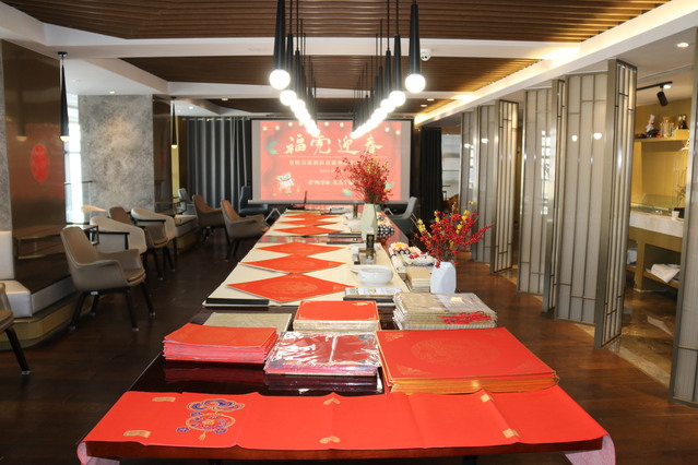 寫春聯(lián)、貼春聯(lián)是中國春節(jié)的傳統(tǒng)習(xí)俗,也是辭舊迎新過大年的一種象征。為弘揚(yáng)中華書法藝術(shù)與傳統(tǒng)節(jié)日文化,給市民、住店客人送上新春祝福。近日,河西集團(tuán)青奧城公司金帆萬源酒店開展“?;⒂骸?022新年納福公益筆會(huì),來自南京的書畫名家應(yīng)邀出席。