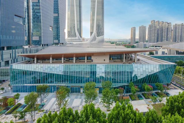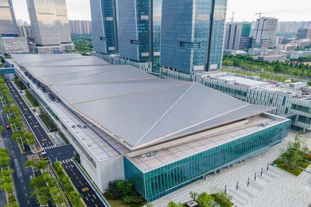 南京國(guó)際博覽中心三期1#樓及大地下室工程位于南京河西新城區(qū),北側(cè)緊鄰南京國(guó)際博覽中心一、二期展館,總建筑面積約21萬(wàn)㎡,地上2層,建筑面積約7萬(wàn)㎡,由展廳、商業(yè)、卸貨區(qū)等用房組成;地下2層,建筑面積約14.2萬(wàn)㎡,為車庫(kù)、設(shè)備用房等。工程于2017年4月20日開工,2021年2月1日竣工??⒐ず螅游骷瘓F(tuán)所屬南京國(guó)際博覽中心一、二、三期場(chǎng)館延江東中路連成一片,以華東最大的會(huì)展中心展現(xiàn)在世人眼前。