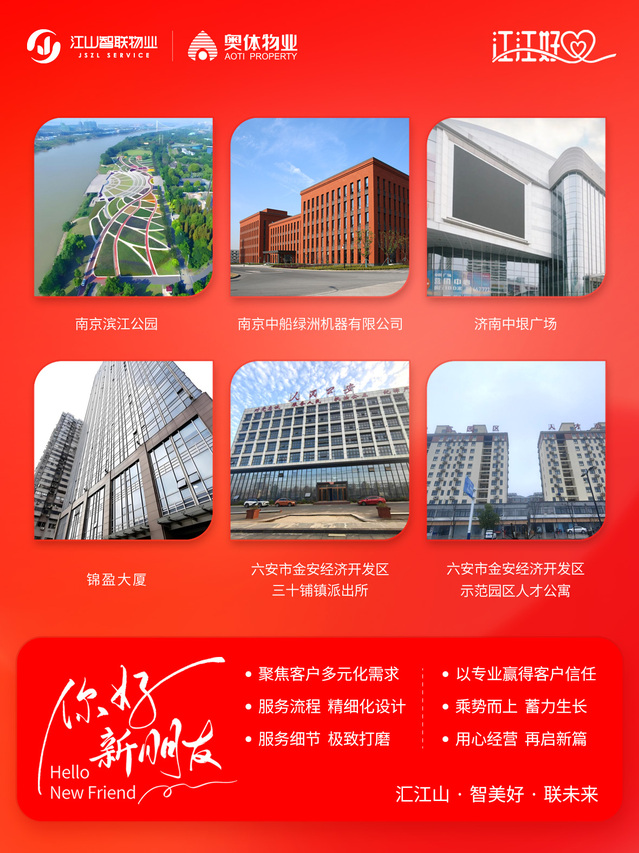 聚焦客戶多元化需求,用專業(yè)贏得客戶信任。江山智聯(lián)物業(yè)將持續(xù)精細化設(shè)計服務(wù)流程、極致打磨服務(wù)細節(jié),乘勢向上、用心經(jīng)營,新年再啟新篇。